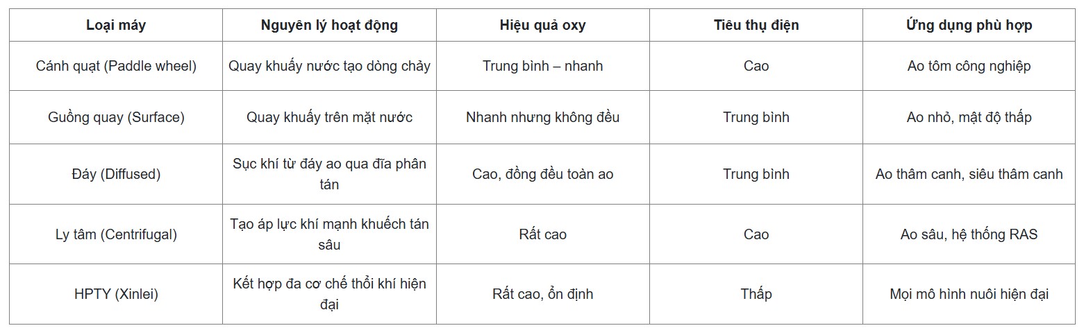 Mỗi loại máy thổi khí đều có đặc tính và ưu điểm riêng, tùy vào mô hình và điều kiện ao nuôi mà người nuôi có thể lựa chọn thiết bị phù hợp. Tuy nhiên, máy thổi khí HPTY đang trở thành xu hướng hàng đầu của ngành thủy sản Việt Nam, nhờ khả năng cung cấp oxy mạnh mẽ, tiết kiệm điện năng, độ bền cao và vận hành êm ái.