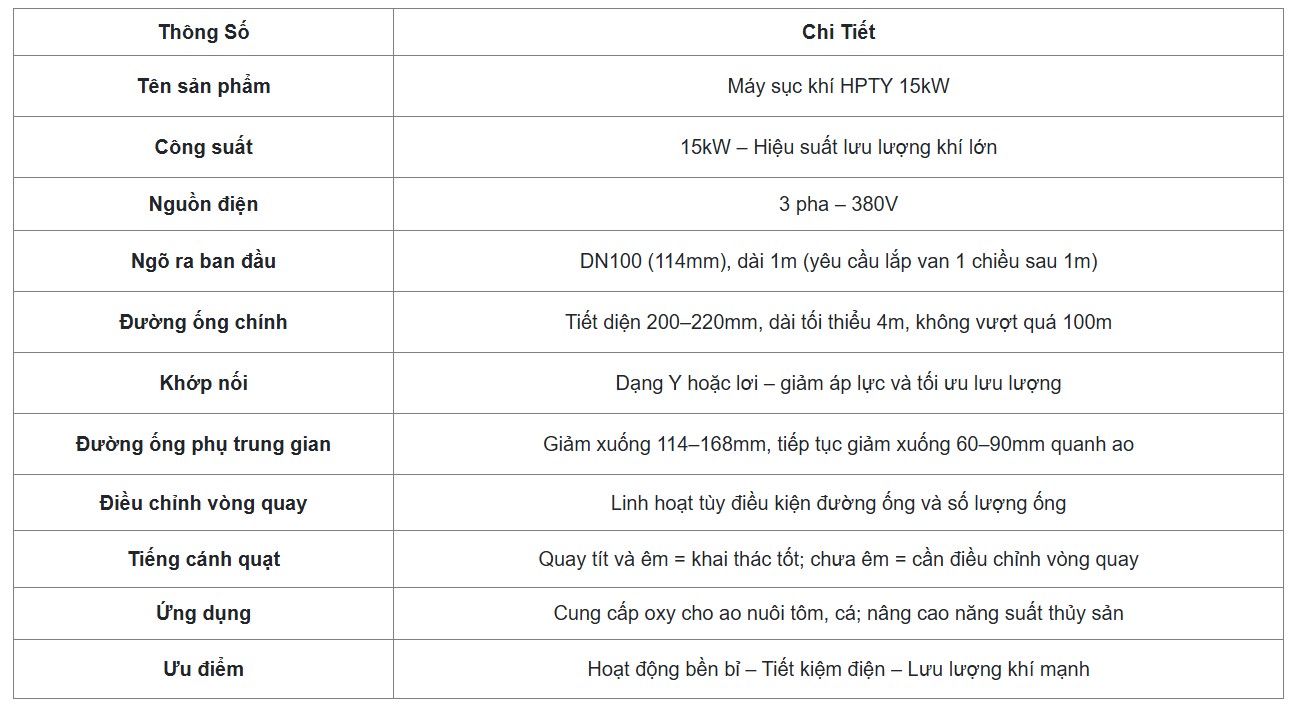 Máy Sục Khí HPTY 15kW – Thông Số, Lắp Đặt & Vận Hành Hiệu Quả Ao Nuôi